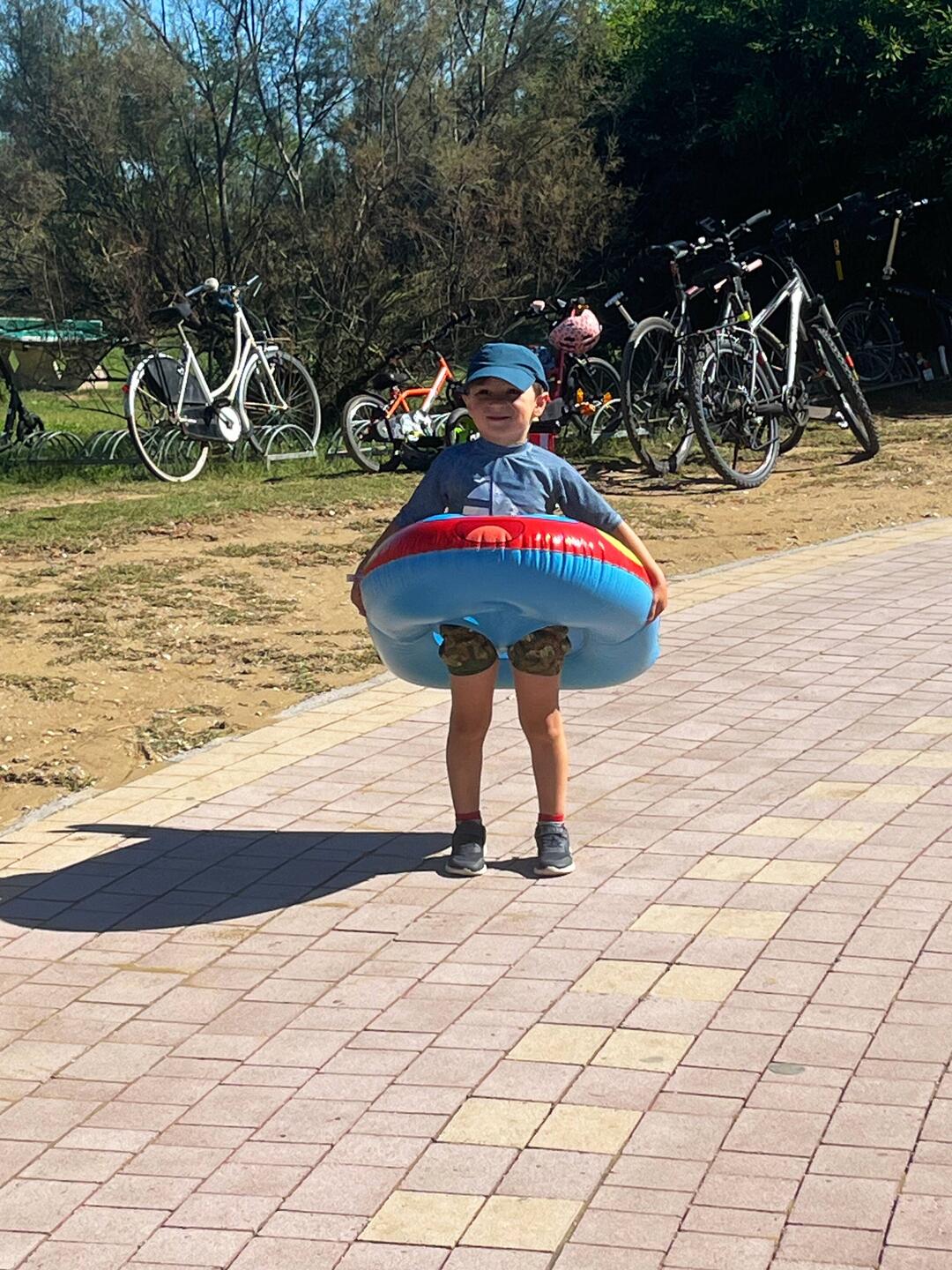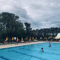 Nach dem Mittagessen geht’s los zum Pool. Diesmal düsen Pepe und Judith mit den Fahrrädern vor und planschen schon längst im Wasser, während Merle und Marco gemütlich mit dem Kinderwagen nachkommen. Judith darf heute sogar beim Aquazumba mitzappeln und schlägt sich tapfer 😅.