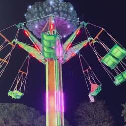 Nach dem Planschen geht’s zum Abendessen, dann machen wir uns noch einmal frisch, um die „Partymeile“ zu erkunden. Zu unserer Überraschung gibt es auf dem Campingplatz sogar einen eigenen kleinen Rummel. Die Kinderdisco lassen wir spontan sausen und schlendern stattdessen über den Platz, wo das ein oder andere Fahrgeschäft ausprobiert wird.