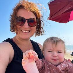 Keine Stunde später ist der Strom wieder da, Merle ist wach und wir machen uns auf zum Strand. Pepe und Judith trauen sich zuerst ins Meer 🌊 und hüpfen gemeinsam durch die Wellen. Merle darf zum allerersten Mal mit Sand spielen und ist fasziniert davon, mit ihren kleinen Fingerchen zu buddeln. Wir bauen Sandburgen, spielen Spritz-Frisbee, surfen mit Merles Erdbeere durch die Wellen, essen Eis und, und, und … eben alles, was man an einem richtigen Strandtag so macht.