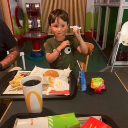 Zum Abendessen kehren wir beim großen M ein 🙈 – Pepe darf zum zweiten Mal in seinem Leben ein Happy Meal essen. Zum Glück bleibt das etwas Seltenes und Besonderes im Urlaub 😅. Unser Vorteil: Es gibt immer einen Indoor- oder Outdoor-Spielplatz dabei 😉. Nach einer ausgiebigen Bewegungspause starten wir dann in die letzte Etappe – noch 2 Stunden bis nach Hause 🙌.