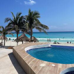 Unser gestern kurzfristig gebuchtes Hotel, Kristal Cancún, liegt im Norden der Partymeile direkt an einem breiten, fast weißen Sandstrand. Herrliches klares Wasser lädt bei 27 Grad WassertemperaturLes mer