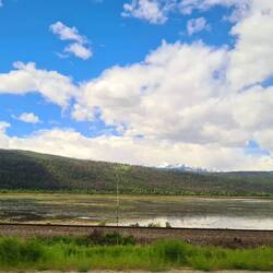 mittagshalt gabs 70km vor golden. die weiterfahrt führte danach an einem sumpfgebiet entlang, wo direkt daneben eine zugstrecke liegt. kann man nur hoffen, dass jeder zug sein ziel auch erreicht. 🤣