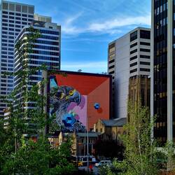 es war nicht mehr so ausgestorben wie gestern abend. schöne graffitis durften wir bestaunen. was auch sehr schnell auffiel war die sauberkeit der stadt! über einen grossteil der stadtmitte zieht sich ein netz mit einem überdeckten skywalk, sicher praktisch wenn es regnet.😁