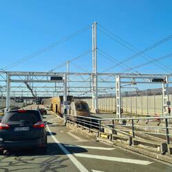 pet controll lief super, martina hat den chip zum glück zack gefunden (nicci, danke für die vorinfo) und madame nervös war schon ein wenig weniger nervös. kurzer pipi und kaffee to go halt, ab zur boardcontrol. die franzosen liessen uns sofort durch, der engländer stellte einige fragen die martina souverän beantwortete und so entgingen wir einer genaueren kontrolle (die NL vor uns mussten ins kabäuschen🤭). da wir glück anziehen, durften wir sogar schon einen zug früher nehmen.🥳🥳 es ist genau dasselbe wie der verlad in der schweiz, nur der zug etwas anders, damit man nicht nass wird. was eindeutig noch gesagt werden muss, die ganze kommunikation seitens le shuttle ist sehr gut und die angestellten mega freundlich und hilfsbereit.
