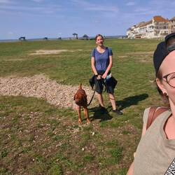 ja und dann, madamme nervös, musste fast schon meditieren 🙈🤣 warum ist man nervös wenn man nichts zu verheimlichen hat?🤦♀️ menschen soll man verstehen. vor der anfahrt zum le shuttle gings in calais noch zum strand, thorin das erste mal am meer (aber erst noch aus der ferne ).🥰 dann wurden alle verbotenen hundeleckerlis an 2 damen mit goldi verschenkt und ab zum zug.