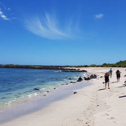Heute erkundeten wir Tintoreras. Mehr als eine Stunde verbrachten wir wieder mit Schnorcheln - viele "schlafende" Schildkröten, Riesenrochen und Iguanas konnten wir sehen und von nahem betrachten.Les mer