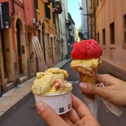 Heute morgen sind wir mit den Zug von Venedig nach Verona gefahren. Vorher hatten wir uns noch focaccia Sandwiches geholt. Die haben wir dann aber erst gegen 12 gegessen als wir in Verona waren. DortLeer más