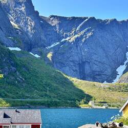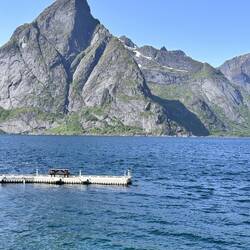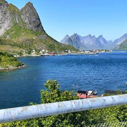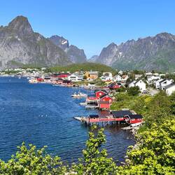 Eine bezaubernde kleine Stadt mit wunderschönen roten Häuschen gebaut auf Pfählen.