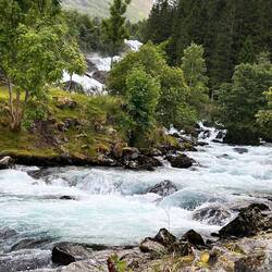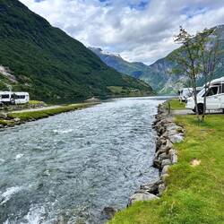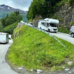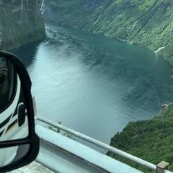 Wieder über wunderschöne Straßen mit wunderschöner Natur gefahren. Fotostopps hatten wir heute genügend. Und dann…. kam die Abfahrt nach Geiranger. Ei, da muss man schon die Zunge gerade in den Mund nehmen, aber einfach traumhaft, 13 Haarnadelkurven….