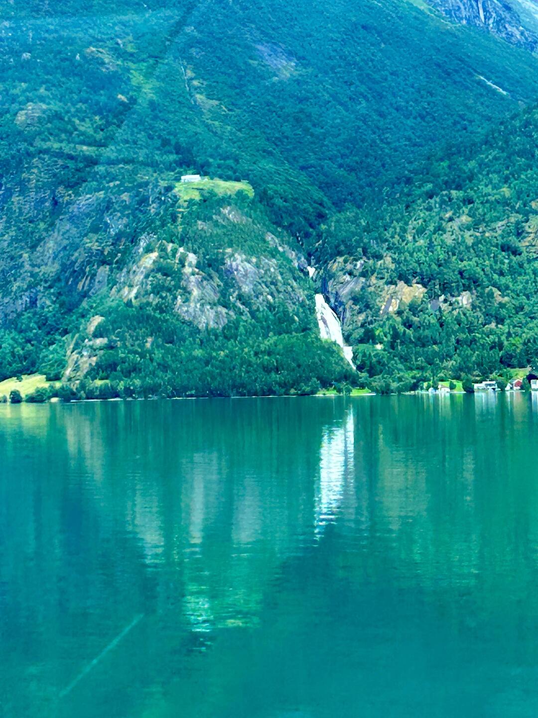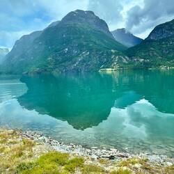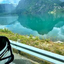 Auf der Fahrt haben wir in Oppstryn an einem Kaffee Halt gemacht. Das lag an einem so herrlichen See, das wir unsere Badesachen hervorgekramt haben und erst mal ein Bad im See genommen haben. DanachLäs mer
