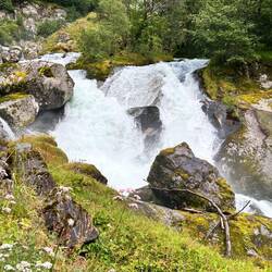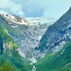 Auf engen Straßen wieder an smaragdgrünen Seen vorbei, durch einen Tunnel der kein Licht hatte ( war einfach ein schwarzes Loch) endlich Briksdalsbree angekommen. Dann hinauf zum Gletscher. LässtEn savoir plus