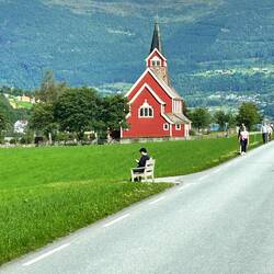 Endlich in Trondheim Gas gefunden. Nun kann es beruhigt weiter nach Sunndalsøra gehen. Unser erster Stopp ist die Stabkirche in Orkanger.