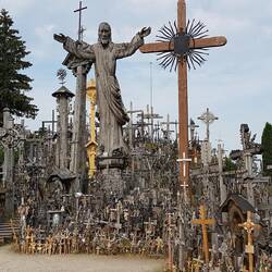 Nachdem wir heute 2 Grenzen überschritten und ein Berg mit Kreuzen erklommen haben, sind wir jetzt auf einem urigen Zeltplatz in einem kleinen Dorf in Litauen gelandet.