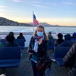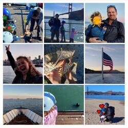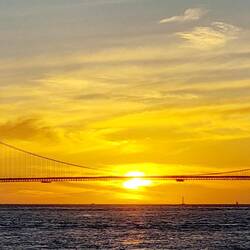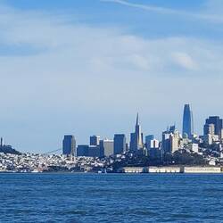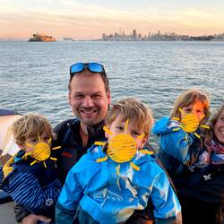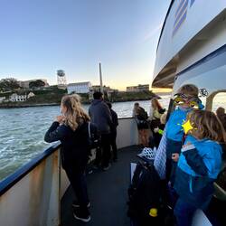 Es ist schon später Nachmittag, als wir wieder aufbrechen. Die Kinder stimmen – zu meiner Freude - für eine Fährfahrt. Und wenn es zuvor schon episch war, wird es nun absolut episch: Als wir ablegen, taucht sich die ganze Bay bereits in gebliches Licht und kurz darauf macht das Golden Gate seinem Namen in jeglicher Hinsicht alle Ehre: Im goldenen Licht der untergehenden Sonne erhaschen wir erneut wundervolle Blicke auf die Brücke und die gesamte Skyline San Franciscos. Wir stehen im immer kühler werdenden Wind und freuen uns an der wundervollen Aussicht. Bis auf Noah, der Arme will rein und lässt sich nur durch Geschichten von Alcatraz ein wenig ablenken, das wir kurz darauf passieren. Alcatraz – vor 10 Jahren haben wir ein ganzes Happening daraus gemacht, zuerst den Film geschaut (sogar mit passender Kleidung und entsprechendem Essen?) und dann haben wir eine Fähre zur berüchtigten Gefängnisinsel genommen, natürlich mit Rundgang. „Wie cool war das!“, erinnere ich mich, als wir ganz dicht an den Gefängnismauern vorbeifahren und sehe noch die kleine Stella, Robins Nichte, in eine der Zellen krabbeln.