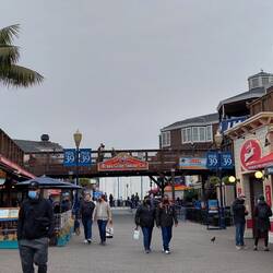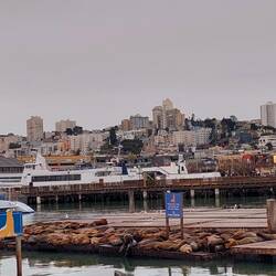 Wir schieben uns dann an Straßenkünstlern und ebenjenen Drogensüchtigen und Obdachlosen vorbei und spazieren durch Chinatown, das so viel ruhiger erscheint als jegliches Viertel, das ich in Peking besucht habe, und ganz gutbürgerlich-schwäbisch erscheint, verglichen mit dem Chaos-Chinatown in Lima. Ich bin erstaunt, denn Rish war im Gegensatz zu mir noch nie hier und auch nicht bei Fishermen's Wharf, das wir ansteuern, dabei wohnt er hier. Es ist eine Offenbarung, durch die Stadt zu flanieren, die Straßen sind derart pittoresk. Dennoch will der Tag nicht so richtig starten: Rish hatte ein Schweigeseminar der Uni hinter sich, einen speziellen Pflichtkurs seines Wirtschaftsstudiums, dessen Sinn und Zweck uns beiden verborgen blieb (kein Scherz! Eine Stunde online schweigen – und das an 12 Unitagen!). Ich selbst stand irgendwie auch den ganzen Tag etwas neben mir, fühlte mich ausgelaugt. Dazu war das Wetter ganz SF-like, bewölkt und, mit dem Shake, den wir uns geholt haben, super ungemütlich und kalt. Auch die Robben am Pier 69 lassen nicht so richtig Stimmung aufkommen. Dennoch schmieden wir Pläne, denn Rish hat bald frei und unsere ganze Truppe wollte ich so gerne irgendwo auf der Welt wiedersehen. Let's do it!