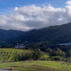 Heute koste ich ihn auch aus: Thomas macht das E-Bike für mich startklar und berät mich bezüglich schöner Wanderwege. Ich starte in die Wälder um Sunnyvale, Salat, Wasser, Snacks, Picknickdecke im Gepäck, auch einen Kartendownload – die wohl wichtigste Ausrüstung für mich. Ich passiere den kleinen Staudamm, der nahezu ausgetrocknet ist, picknicke dort und rolle dann mit wehendem Haar in den Wald, mache einen Abstecher und fahre einem kleinen Bach entlang. Dieser Duft! Es riecht ein wenig nach Erde und den trockenem, gelben Laub, vielmehr aber nach aller Art von Gewürzen: ein wenig Maggikraut, ein bisschen wie Thymian und Grasduft, einen Hauch Rinde der Redwoods. In meinem Kopf formt sich das Bild eines kühlen Herbsttages, an dem ich mit einer Tasse Kräutertee am Fenster stehe, die wärmenden Sonnenstrahlen genieße und langsam einen Teelöffel goldenen Honig in die Tasse fließen lasse. Und obwohl ich auch an diesem Tag oftmals traurig bin, fühle ich gleichermaßen glücklich, denn der Duft der Wälder umhüllt mich irgendwann wie ein wärmender Mantel. Ich habe so Spaß am Radfahren, dass ich den Wanderweg vergesse und mich schließlich verfahre. Wie sollte es anders sein... Mir aber ist es völlig egal und das Alleinsein hat diesbezüglich viele Vorteile! Also nochmal: Ich habe so viel Spaß beim Radfahren, dass ich alle Pläne vergesse und die Gegend auf meine ganz eigene Art entdecke. Letztlich finde ich auch den Weg durch die idyllischen Weinberge zurück, vorbei an der Truthahnfarm und einigen weidenden Rehen, die mich mit großen Augen anblicken, aber völlig ohne Scheu. Ich verfolge einen großen blauen Vogel und bleibe einfach mehrfach stehen, nur um zu genießen; ganz nach dem Motto „Der Weg ist das Ziel“. Ich erinnere mich an eine Wanderung durch einen Nationalpark, bei der ich mehrfach um eine Pause bitten musste, da hier das Ziel als Ziel veranschlagt wurde – auch ein Weg, aber nicht meiner. Als es frisch wird, geht es langsam zurück, entspannt mit Teepause und Kürbismuffin, passend zum Herbstmotto und mir.