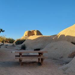 Während uns auf der Route nur einzelne Joshua Trees begleitet haben, finden sich hier ganze „Wälder“ dieses Baumes wieder. Die Landschaft ist so einzigartig, ich würde am liebsten alle 50 Meter halten, um noch länger zu schauen. Wir sind vom felsigen Bergen und stacheligen Bäumen umgeben, die zu allerlei Assoziationen und Klettertouren einladen, sonst sieht man nur karges und trockenes Land, überall Sandwüste. Zwei Tage werden wir von so wunderschöner Natur umhüllt werden, dass ich gerne eine Staffelei aufgestellt und alles in den schönsten Acrylfarben festgehalten hätte. Umso mehr wollte ich alles in meinem Gedächtnis speichern, damit ich es vor meinem inneren Auge jederzeit wieder abrufen kann – die Fotos werden der Realität in keinster Weise gerecht werden!