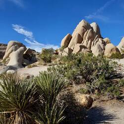 Nun, was hat es nun mit diesen Joshua Trees auf sich? Der Name war auch mir unbekannt und bedurfte einer kleinen Recherche. Anscheinend bekam diese Yucca-Art (dt. Josua Palmlilie) seinen Namen von mormonischen Siedlern, die Mitte des 19. Jhs die Mojave Wüste durchquerten. Die einzigartigen Formen der Äste erinnerten sie an die biblischen Geschichten von Josua, der seine Hände zum Gebet Richtung Himmel getreckt hatte.Ich muss an dieser Stelle gestehen: Die Bäume sahen für mich keineswegs wie flehentlich erhobene Arme eines Mannes aus, der in der Wüste betet...