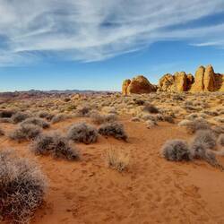 Im Süden Nevadas, etwa eine Fahrtstunde von Vegas entfernt, findet sich mit 141 km² der größte State Park dieses Bundesstaates. Dieser stellt ein „geologisches Wunderland“ dar, wenn man der Parkbeschreibung im Internet Glauben schenken kann. Die leuchtend roten Sandsteinformationen, die sich durch Wanderdünen und Erosion geformt haben, geben diesem Tal zu Recht seinen Namen, wie ich finde. Denn tatsächlich scheinen die Felsen geradezu im Sonnenlicht zu brennen und zu leuchten, als wir uns vom wüsten Ödland dem Park nähern. Welch unheimliche Kraft uns hier entgegenströmt! Ich freue mich wahnsinnig auf die nächsten Stunden!