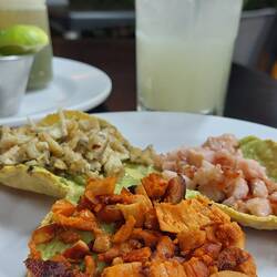 Angekommen in Sausalitos, einem beliebten Ausflugsziel der Region, mit Fähranschluss, Fischrestaurants und einer schönen Promenade, suchen wir uns ein leckeres Restaurant, bei dem es Fisch und Meeresfrüchte gibt. Einfach lecker! Gerade noch können wir Finn davon abhalten, den gesamten gedeckten Tisch abzuräumen, Noah und Hannah hingegen malen fleißig Seepferdchen aus und knuspern ihre Chickenwings... Außerhalb des Stuhls rennt der Zweijährige ständig zur Ausgangstüre und will türmen (Hier Grüße an Christine und Peter, die das schon mit Mika erlebt haben!) - kurzum: Es wird nicht langweilig!