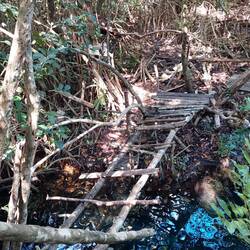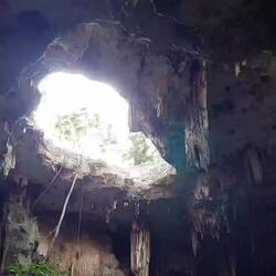 Wir stehen am Ende und blicken 8m tief hinunter. John springt zuerst. Ob ich mich auch traue? Klar! Der Fall ist diesmal wirklich lang, lang auch die Zeit unter Wasser, bis man wieder nach oben kommt. Allerdings schmerzt mein Ohr nach dem Sprung sehr, sodass ich nur noch einmal mit dem Seil hinein schwinge und sonst einfach nur schwimme oder die Umgebung genieße. Als ich bedaure nur wenig Tiere zu sehen, entdeckt Matthias, der Israeli, eine Tarantel. Moment, da war ich doch noch gerade gesessen! John lacht und meint, hier gäbe es im Frühjahr Dutzende. Ich lache auch - aber nicht ganz gelassen. Bilder in meinem Kopf, wie der Waldboden sich um mich herum voller Taranteln bedeckt ist. Ahhh! Aber hier ist es anders herum: Unsere Kameras verfolgen das Tier, bis es reißaus nimmt. Nach unzähligen Sprüngen, Schnorchel- und Tauchgängen brechen wir wieder auf. Sehen noch ein Krokodil im nahe gelegenen Teich schwimmen und sammeln Matthias nach seiner Irrfahrt wieder ein.