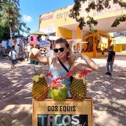 Da die Insel bekannt für ihre außergewöhnlich schönen Korallenriffe ist, möchte auch ich hier einen Schnorchelgang nicht missen wollen: Ich habe nicht mehr so viel Zeit bis zum Sonnenuntergang und besuche daher nicht den teuren, aber auch besten Ort zum Schnorcheln, sondern tauche nach einem fantastischen Essen in einem malerisch gelegenen Restaurant kurzerhand in deren anliegende Bucht. Wieder einmal unter Wasser, abschalten und staunen, statt den eigenen Gedanken, folge ich den Fischen und bin herrlich entspannt, als ich auf der Liege hier sowohl Renes und Javanns Schiff als auch die Sonne verabschiede. Ich kaufe noch eine mexikanische Waffel, deren Namen mir leider entfallen ist, und setzte abends wieder über nach Playa. Die nächsten Begegnungen vom anderen Ende der Welt warten auf mich!