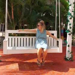Ich hingegen bin fit und freue mich auf die Yoga-Klasse bei Alma. Ich wecke danach Rish aus dem Tiefschlaf und bringe ihn zum Auschecken – denn wir werden direkt weiter auf eine Insel übersetzen. Auf uns warten ein paar fantastische Tage auf der Isla Mujeres – der Insel der Frauen – in einem vielgelobten Hostel, dem Nomads. Jede Beschreibung zu diesem wunderschönen Ort ist mehr als zutreffend: Direkt am Strand gelegen, mit vielen Hängematten, Tagesbetten, einem Steg, auf dem man ein wenig hinauslaufen kann, Palmen und ansprechender Gestaltung, tollem Frühstück. Ich bin sofort angetan von diesem Ort und den netten Leuten hier, weiß schon jetzt, dass ich gerne länger bleiben würde! Und das Leben spielt uns wieder einmal wohlwollend in die Hände, als uns wegen einer meiner Kommentare zu Rish Serrel, eine Britin, lachend anspricht. Die Begegnung mit ihr wird unsere Insteltage so erhellen und erheitern, dass auch dies nicht das letzte Treffen gewesen sein soll!
