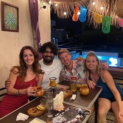 Wir finden abends ein tolles Lokal, wo wir mit den Locals mit Mezcal anstoßen. Die Heuschrecken, die dazu kredenzt werden, probiere ich als erste, die anderen folgen zögerlich... Beides schmeckt uns letztlich nicht, aber was soll's. Es geht weiter: Im Selina-Hostel legt ein DJ auf – elektronische Musik (heute ist wieder einmal MEIN TAG!) - also geht es weiter, Party – After-Party, wir tanzen solange die Musik an ist. Zur Afterparty geleitet uns ein Insulaner, der sich auf seinem Fahrrad fahrend, an unserem Cart festhält und uns so den Weg zeigt. Ich kann kaum hinschauen!