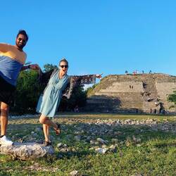 Man kann hier ganz gut mit den Augen staunen und im Hintergrund hört man das Fauchen eines Jaguars, während man sich vor seinem inneren Auge die Maya und ihre Blutopfer ausmalt – und plötzlich war man ganz alleine in dieser historischen Stätte und muss sich umblicken, ob nicht doch etwas oder jemand hinter einem steht...