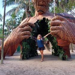 Nach seiner Einführung erkunde ich mit den zwei Kanadiern Mo und Ro die Ruinen, Sonja, eine Schweizerin stößt noch zu uns und wir alle können nur angesichts der Schönheit des Ortes staunen – Hier finden wir unter anderen den „Tempel des Herabsteigenden Gottes“ und den „Tempel des Windes“, die Stadt wird von einer Mauer umrundet und öffnet sich zum Strand hin – türkises Meer und eine leichte Brise sind hier vorzufinden. Mo versucht sich als Youtube-Star – aber er braucht noch etwas Übung ;-) Dennoch: Falls es dieses Video je online schafft, wird man auch mich darin vorfinden!