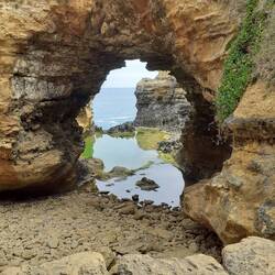 After spending yet more time staring at them, we moved on. Loch Ard Gorge was a little less impressive in comparison but still cool. The arc shape made the bay below fill with practically still water, the waves dissolving into the rock. Next to it was a very cool headland. Eroded down by the waves and sea spray, it was spiky on the top and smooth down the side. Super cool.