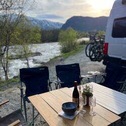 Am nächsten Morgen strahlt die Sonne vom Himmel durchs Camper Fenster und Max muss mich erst mal kneifen, dass wir tatsächlich in Norwegen sind. 😉🇳🇴