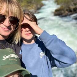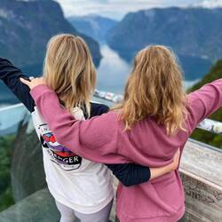 Max und ich starten früh zu einem Morning Hike direkt von Geiranger aus zu einem Aussichtspunkt hoch über den Fjord. Die Kids schlafen noch. Wir begegnen zwar keinen Elchen (darauf warte ich immerLäs mer