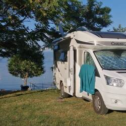 Tschüss Adria, war schön hier. Wir sind Richtung Zagreb unterwegs, heute bis Rastroge gefahren bei max. 38°C. 😱