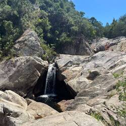 Today is a scorcher, so we decided to walk to a waterfall.