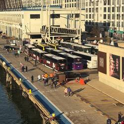 Nach dem Frühstück warten die Ausflugsbusse auf die Passagiere um Boston und Umgebung zu erkunden 😇