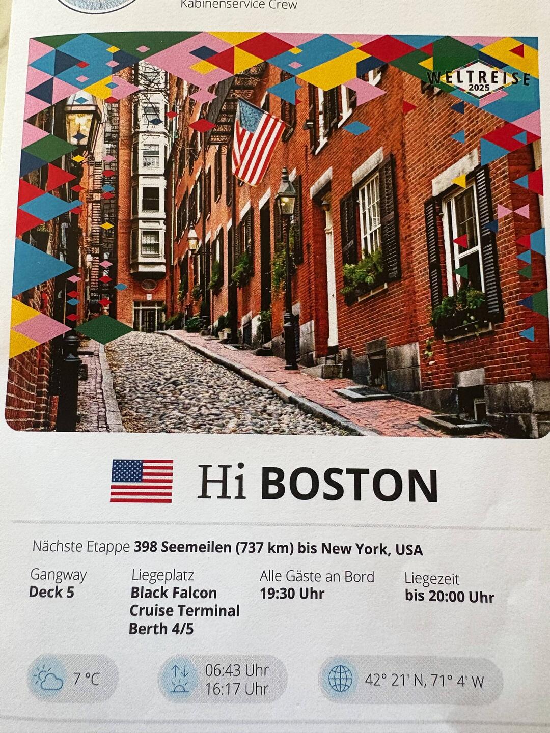Heute Nacht haben die AidaDiva 🛳️ und wir in Boston übernachtet 😜.