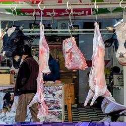 Buscher shop with cow heads outside