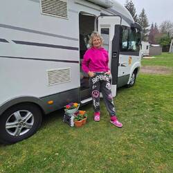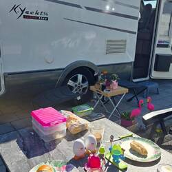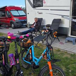 Kleiner Stellplatz für zwei Übernachtung, mit den Fahrrädern 🚲🚲 nach Dewangen zum Doppel Geburtstag 🎂🥳🎉🎈🎁 Tochter Andrea 38 und Enkelkind Valentina 5 ... schön 🌞🌺🌴🥂 isses.