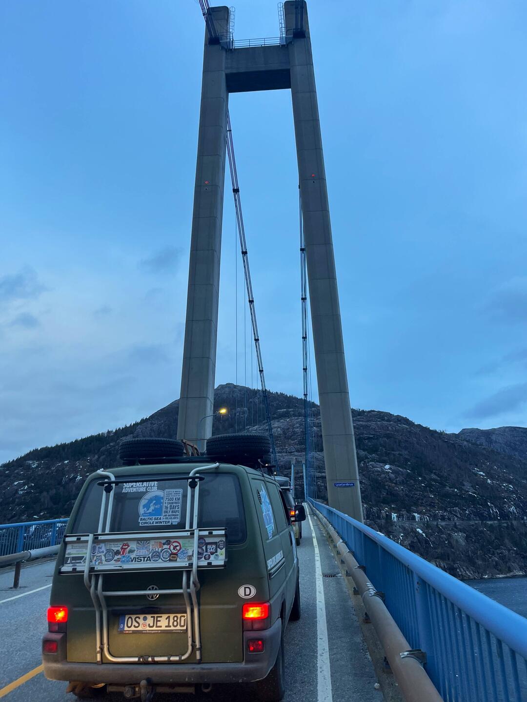 Extra lange Dunkelfahrt… Erst ging es über die Brücke und dann in den Tunnel. Mit 7890 m ist Bømlafjordtunnel einer längsten und tiefesten Unterwassertunnel Norwegens. Er hat eine Steigung bzw.Läs mer