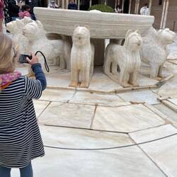 Frevelhafter Weise haben wir kein Ticket für Hilde, die zwar keinen Eintritt zahlen muss, aber ohne Karte nicht mit rein darf. Wir werden siebenmal zu einem anderen Mitarbeiter irgendwo auf dem Gelände weiter geschickt und schon haben wir auch das im Kasten! Der Palast mit den vielen Ornamenten und Mustern der islamischen Kunst ist eine Augenweide und erinnert uns etwas an das Taj Mahal. Alma fotografiert ausgiebig den berühmten Brunnen im patio de los leones (Löwenhof) und Hilde hat vor allem viel Freude an den Brunnen und bodennahen Wasserläufen. Auf dem Rückweg kaufen wir uns noch eine kleine Fliese als Andenken.もっと詳しく