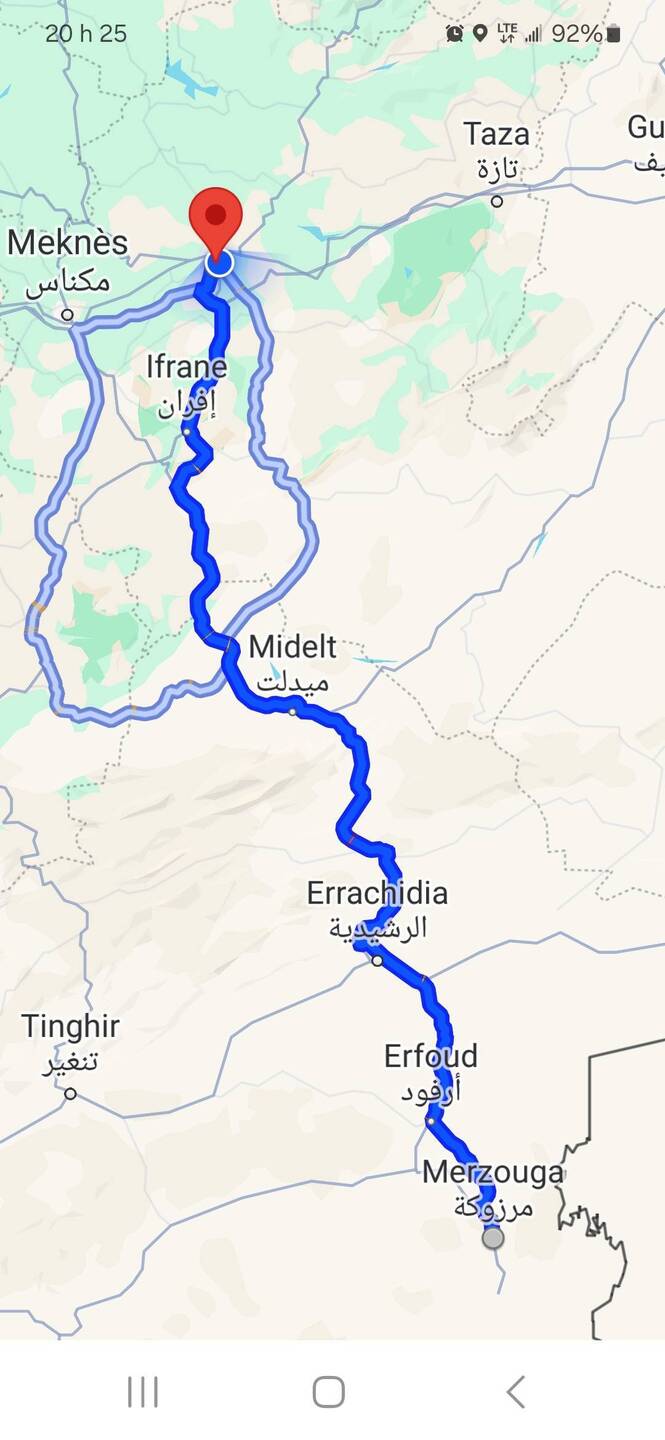 Longue route de Merzouga (désert) à la ville de Fès.