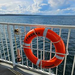 Ik was mooi op tijd bij de pont en heb daar even over een mooi strandje gewandeld en een leuk beest op de foto gezet. Toen aan boord en daar eerst een hapje gegeten, een zalige sandwich met kip en bacon 😋 Toen natuurlijk nog even aan dek gaan kijken en lekker uitgewaaid.