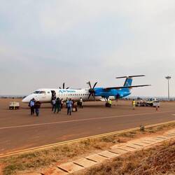 Eine Stunde später setzt die kleine Bombardier-Propellermaschine in Songea auf. Das Flugzeug kommt auf der Landebahn zum Stehen und dreht. Nachdem ich mich kurz gewundert habe, wieso wir mitten auf der Start- und Landebahn drehen, wird mir klar: Das hier ist kein Flughafen, wie ich ihn kenne. Keine Nebenwege, nur die eine Bahn ist asphaltiert, und sonst ist auch kein Flugzeug zu sehen. Absolutes Highlight ist die erneute Passkontrolle. Mitten im Freien steht ein kleiner Tresen aus Holz. Dahinter eine junge Frau in einer gelben Warnweste. Auf dem Rücken steht „IMMIGRATION“. Ich stehe an, zeige meinen Reisepass und meinen Visastempel. „Karibu!“ (Willkommen!). Zwei kurze Fotos mit ihrem iPhone, und ich darf durch.