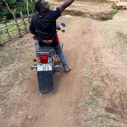 Wir halten die ersten beiden PikiPiki-Fahrer an, die wir sehen. Schnell wird klar, dass das Umsteigen am Busstand uns zu anstrengend ist. Also handeln wir den Preis aus, um direkt bis nach Litembo zu fahren. Da es Anna nicht so gut geht, fährt sie alleine. Robin und ich quetschen uns auf das zweite Motorrad. Eigentlich sind diese Motorräder für zwei Personen gebaut. Die dritte Person (in diesem Fall ich) sitzt auf dem Metallgepäckträger. Jede Bodenwelle überträgt sich direkt auf mein Becken. Eins zu eins. Von meiner Wirbelsäule hoch und mein Kopf wird wie ein Basketball hin- und hergeschleudert. Aber man ist ja nur einmal jung, wird schon nicht so schlimm werden. Den Rekord, den ich selber gesehen habe, waren vier Erwachsene und ein Säugling, der auf der Brust des Fahrers gebunden war. Da sind wir zu dritt doch harmlos.