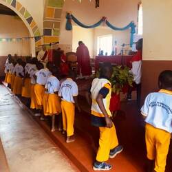 Mittwochmorgen geht’s zum Gottesdienst in der Krankenhauskapelle. Wie immer verstehe ich nichts, aber da hier alle Mitarbeitenden gerne hingehen, schließe ich mich an. Auch Father Raphael, Geschäftsführer des Litembo Hospital, ist anwesend. Er hatte mir gestern noch mitgeteilt, dass ich meine Kamera und meine Drohne mitnehmen solle. Wofür genau, weiß ich noch nicht. Aber ich gehe davon aus, dass ich erstmal auf die Station gehe und er mich irgendwann zu sich holt.