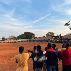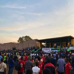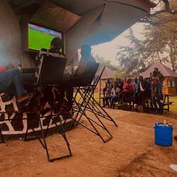 Es herrscht ein riesiges Gedränge in der Innenstadt. Die meisten Menschen sind jedoch in den kleinen Bars und Restaurants, die für unsere Verhältnisse eher wie Kioske wirken. Überall läuft Fußball, und wir sind natürlich gern gesehene Gäste, vor allem als Mzungu (Weiße).