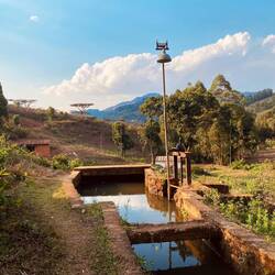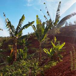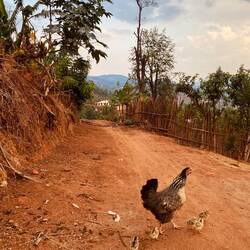 Die Fahrt geht durch die wunderschöne Landschaft nach Litembo. Die Wege bestehen aus Lehm, Steinen und Sand und winden sich die Hügel und Berge hinauf. Mal geht es rauf, mal ein Stück runter. Am Wegesrand wachsen Bananen- und Kaffeepflanzen. Es ist traumhaft, durch diese Landschaft zu fahren und einfach in die Ferne zu blicken. Die Sonne und Wolken wechseln sich ab und sorgen für ein angenehmes Fahrklima. Doch mit jedem Schlagloch merke ich den Anstrengungsgrad und von Minute zu Minute wird es immer schwieriger. Augen zu und durch.