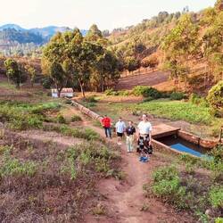 Da es noch hell ist, machen wir einen Spaziergang durch Litembo. Die kleinen Wege führen uns durch einige Kaffeeplantagen und ins Tal. Es ist anstrengend, aber auch wohltuend. Bei jedem Schritt merke ich, dass ich eine Stunde lang auf dem Metallgitter des PikiPiki gesessen habe. Jeder Schritt erinnert mich an die zahlreichen Schlaglöcher und Steine, über die wir mit dem PikiPiki „geflogen“ sind. Aber diese halbe Stunde Spaziergang ist Gold wert.