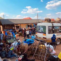 Blauäugig wie ich bin, ging ich davon aus, dass es an einem Flughafen auch einen Busbahnhof gibt. Fehlanzeige! Ich muss also einen der Fahrer bitten, mich mitzunehmen. Problem nur: Niemand versteht mich. Die Menschen in Songea im Süden leben nicht vom Tourismus. Kaum einer verirrt sich hierher. Und wenn, dann wollen sie nach Litembo ins Hospital, um hier zu arbeiten und zu helfen. Ich gehe zurück und spreche eine Polizistin an. Sie kommt mit, übersetzt und schmunzelt. Wahrscheinlich, weil der Fahrer heute etwas mehr verdient als gewöhnlich. Mir bleibt aber keine günstigere Alternative. Er bringt mich zum nächsten Busbahnhof: Luiku Bus Stop. Da ich durch die Windschutzscheibe schon wieder hunderte Menschen sehe, die sich um zahlreiche Busse tummeln, versuche ich meinem Fahrer zu vermitteln, dass ich nach Mbinga muss. Ich wiederhole einfach mehrfach „Mbinga! Mbinga!“.
